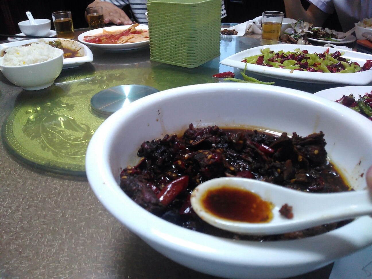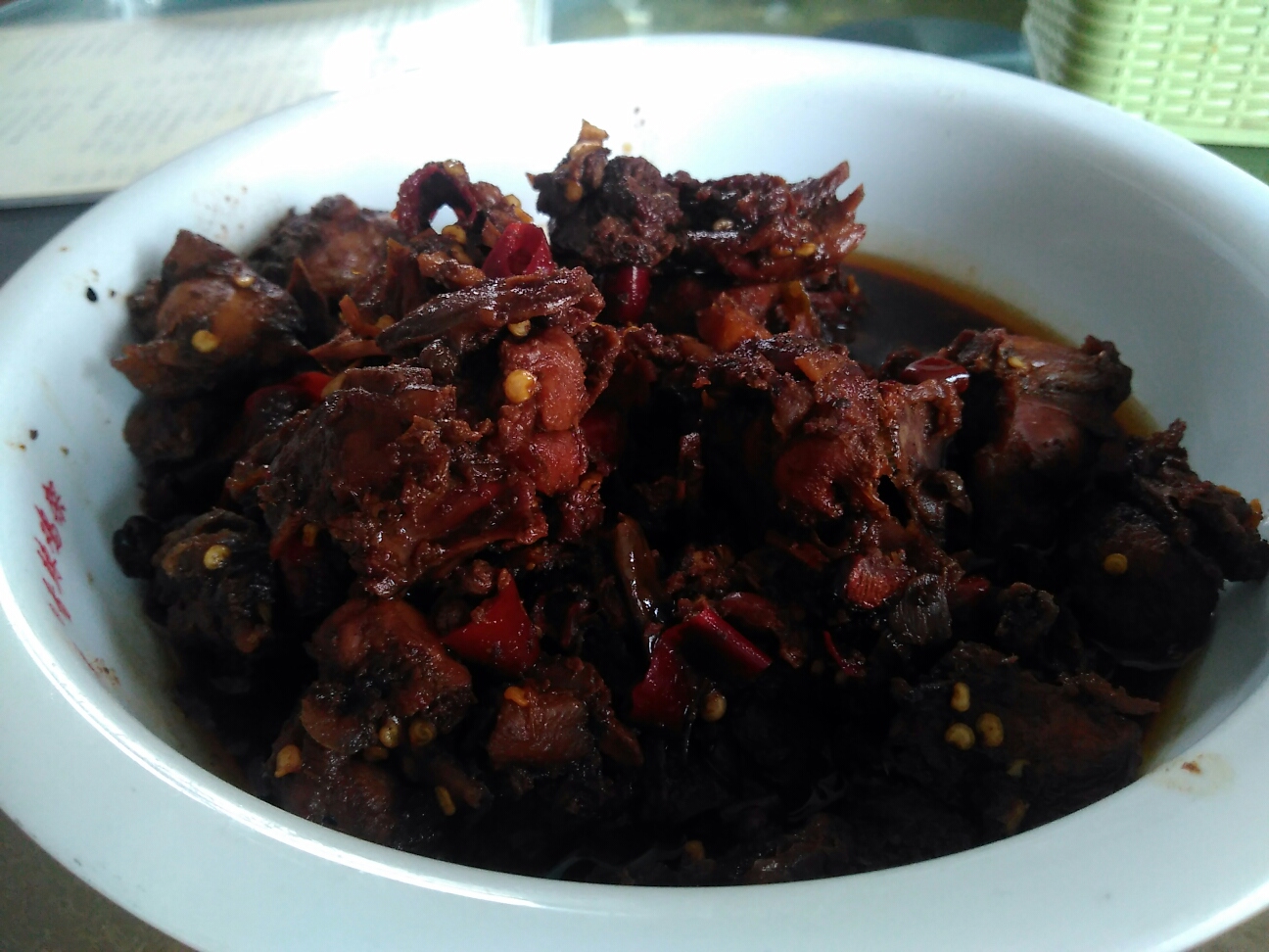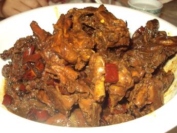 鶏架とは、鶏のもも、皮、胸肉、頭、首、羽根、内臓を取り除き、残った部分のことで、ほとんど骨。それを醤油で煮込み、辣椒、花椒、八角などで味付けしたもの。価格も小16元、大25元。香辣系ではあるが、辛さもおさえめなので、メイウェンティ。ぜひ一度お試しあれ。