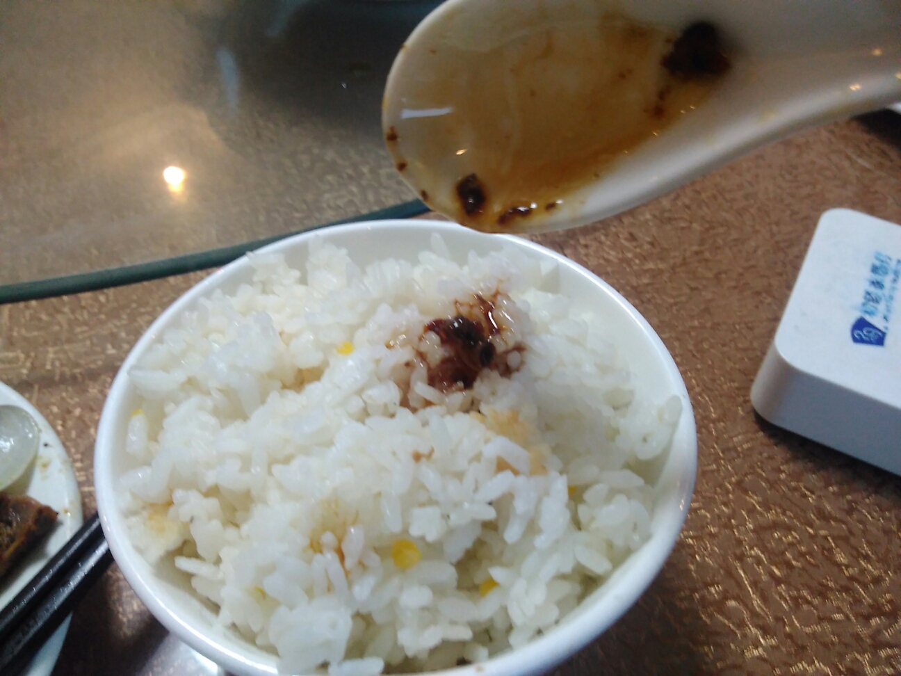 ある程度食べたら、たれをごはんにかけて、鶏だれごはん♬ピリ辛のたれがごはんにぴったり。