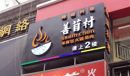 ここ、善苜村の米餅包は、鉄板で肉を焼き、真ん中の火鍋で野菜やシーフードをゆで、それらをライスペーパーでをまいて食べる料理(セット価格98元~)。店内の映像の通りに、どんどん巻いてたべましょ~~~♪