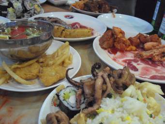 肉や野菜、シーフードはもちろん、その他の料理も充実。韓国ならではのキムパプも。