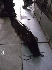目の前でなまずに一発天誅!