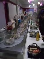 タイドンのウォルマート横のあのお店がここにも新たにお店を出していました。値段設定も本店と同じ。本来、麻辣串は、真ん中の大きい鍋で野菜や練り物などを串に刺して煮込んだもの。ただし、当店では、回転ずしみたいな感覚で、回ってきた具材を一人用の鍋に入れてぐつぐつ煮込んで楽しさ倍増!正に、回転おでん。スープも当店オリジナル。メニューも白菜や練り物、カニ棒、きのこ系、肉系…と盛りだくさん!