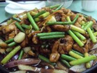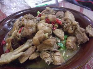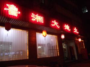 魯は山東省のこと、湘は湖南省のこと。つまり、山東と湖南の料理が食べられるお店です。おすすめは、鶏のぶつ切りを煮た山東の生炒小公鶏(38元)。唐辛子でちょっとピリ辛。もちろんアレも入っています。イェ~イ♪湖南の湘式炒牛臉(26元)もハオチー。