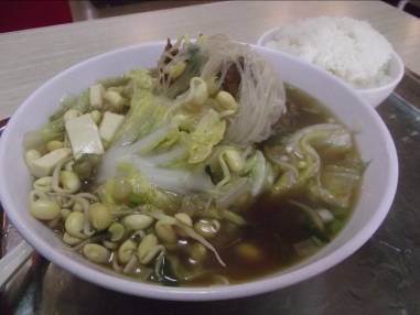 老滋味のパイクーハン[排骨米飯](10元/14元/18元/22元)は、味わい深いしょうゆベースのスープの中に、味がよくしみこんだ豚のスペアリブがごろごろ。よく火が通っていて、骨も簡単に外せます。だから、食べやすい!ちょっと食べるのが苦手な人でも、ムーユーウェンティ!トッピングは昆布、白菜、冬瓜、じゃがいも、もやしから。いくつ注文しても、トッピング代はとりません。ごはんもおかわり無料!本場沂蒙の羊肉水餃子(1つ1元。15個~)もおすすめ。