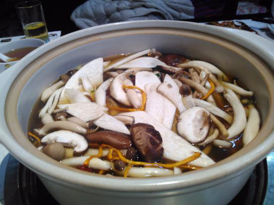 キノコのスープ[特色菌湯清鍋/小10元、大35元]でしゃぶしゃぶ。