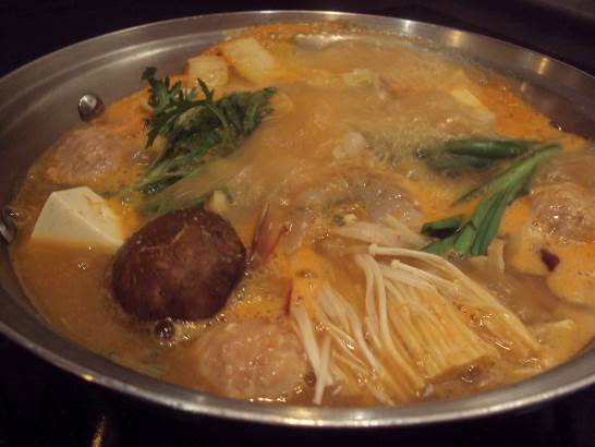写真は、キムチ鍋。力丸に来て必ずこの鍋を注文する日本のお客さんもいるほどのうまさ。