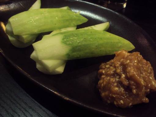 お酒のおつまみに、どすこいもろきゅう(28元)はいかが。