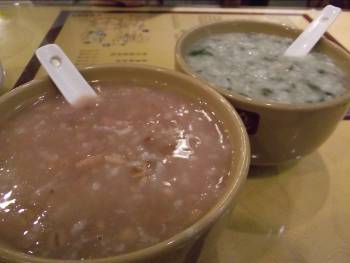 日本ではお粥といえば、白いお米のものがでてきますが、こちらは実に種類豊富で、その数十数種類(6元~)!日本の大米粥から黒米粥、芋粥、八宝粥…まで盛りだくさん。その他の料理も充実。エビ入りの野菜のかき揚げ[什蔬虾仁](28元)がハオチー。どれも日本人にやさしい味付けです。