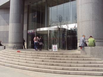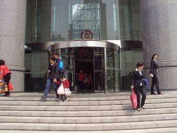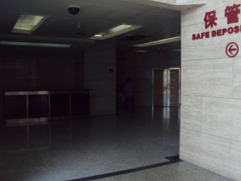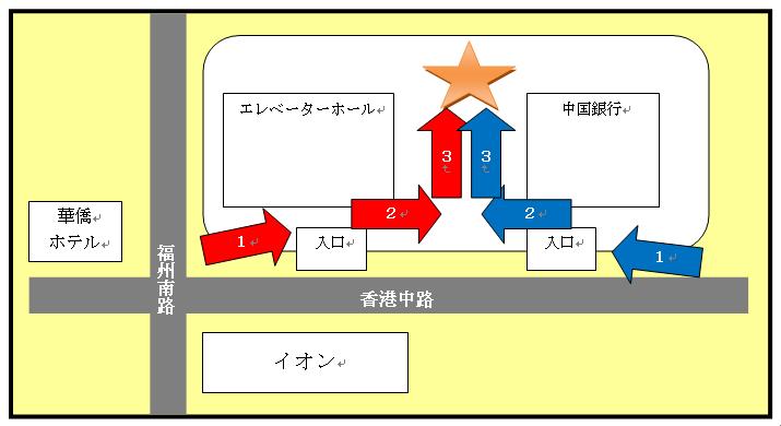 正面入口から中へ。(赤1) 中国銀行側入口から中へ。(青1)