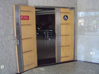 入口入ったら、右へ。奥にまたドア。(赤2) 入口入ったら、左へ。(青2)